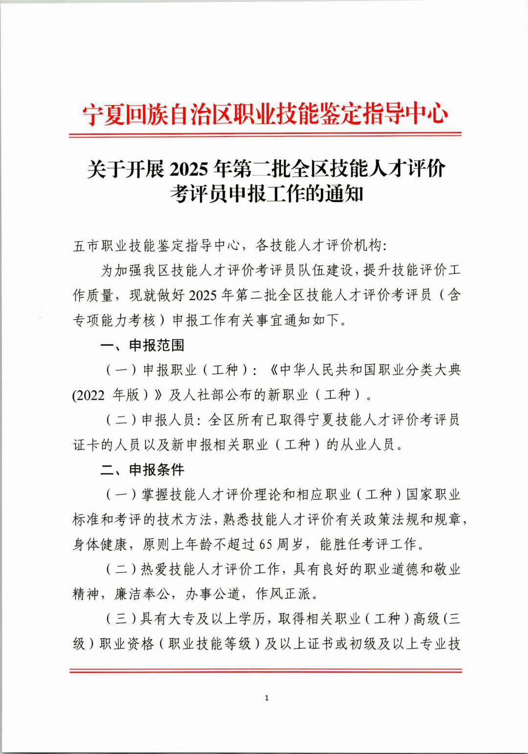 关于开展2025年第二批全区技能人才评价考评员申报工作的通知