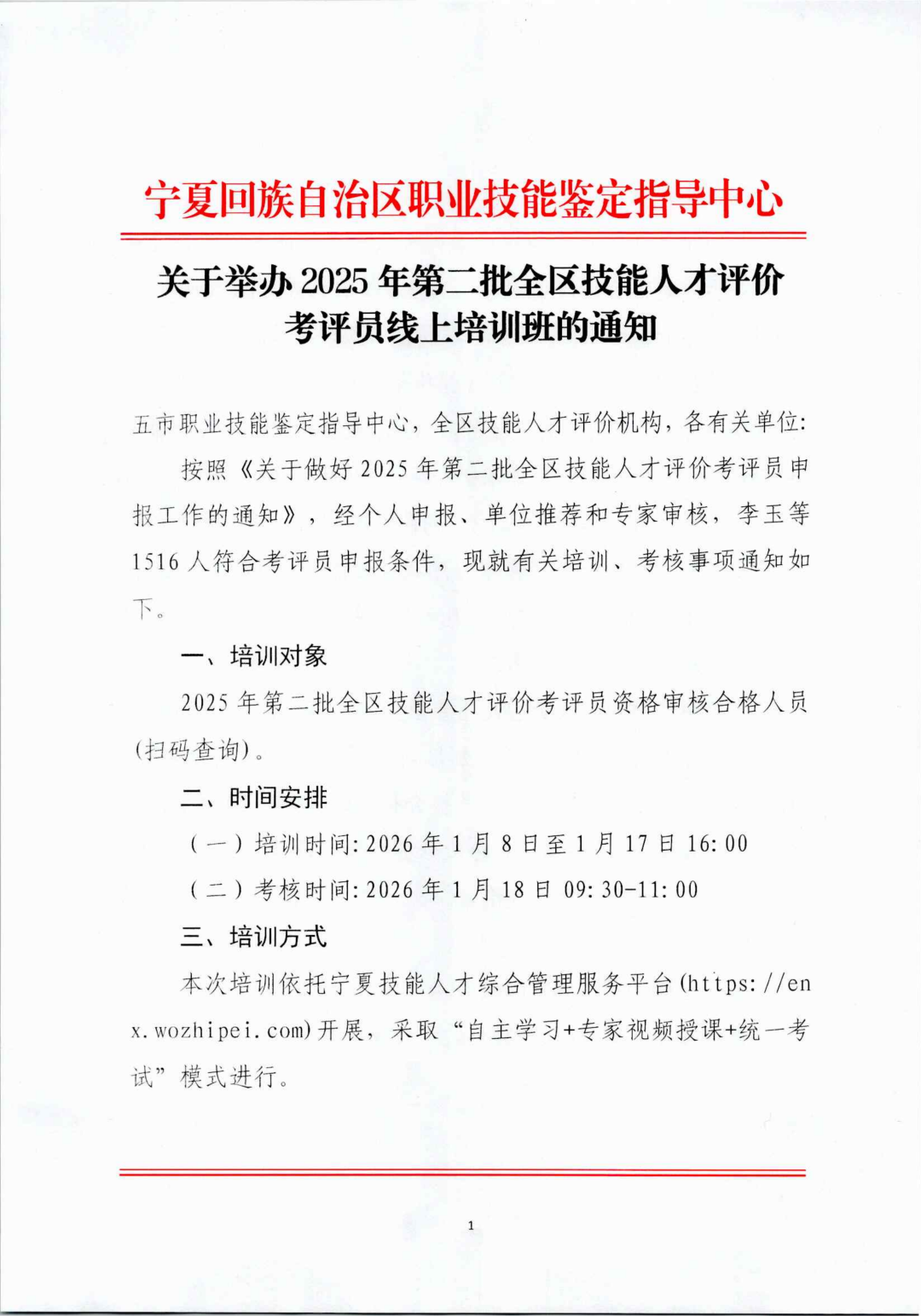 关于举办2025年第二批全区技能人才评价考评员线上培训班的通知